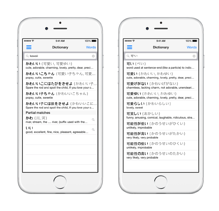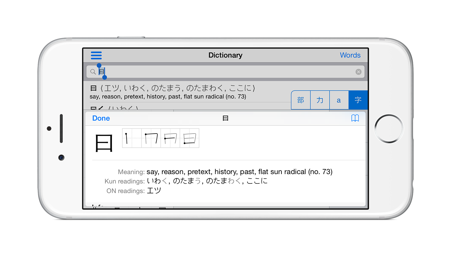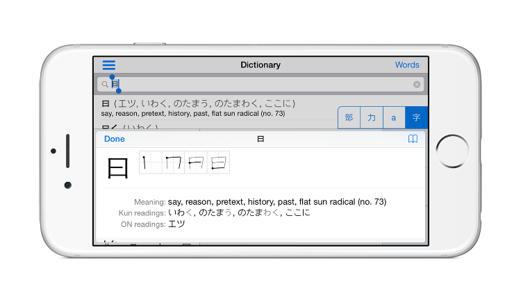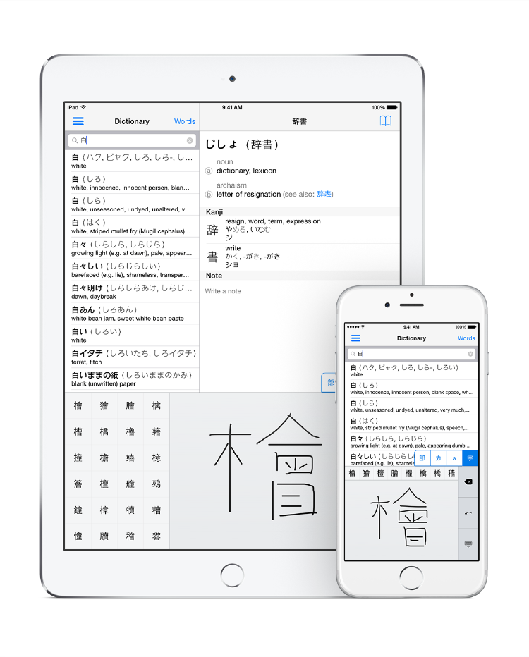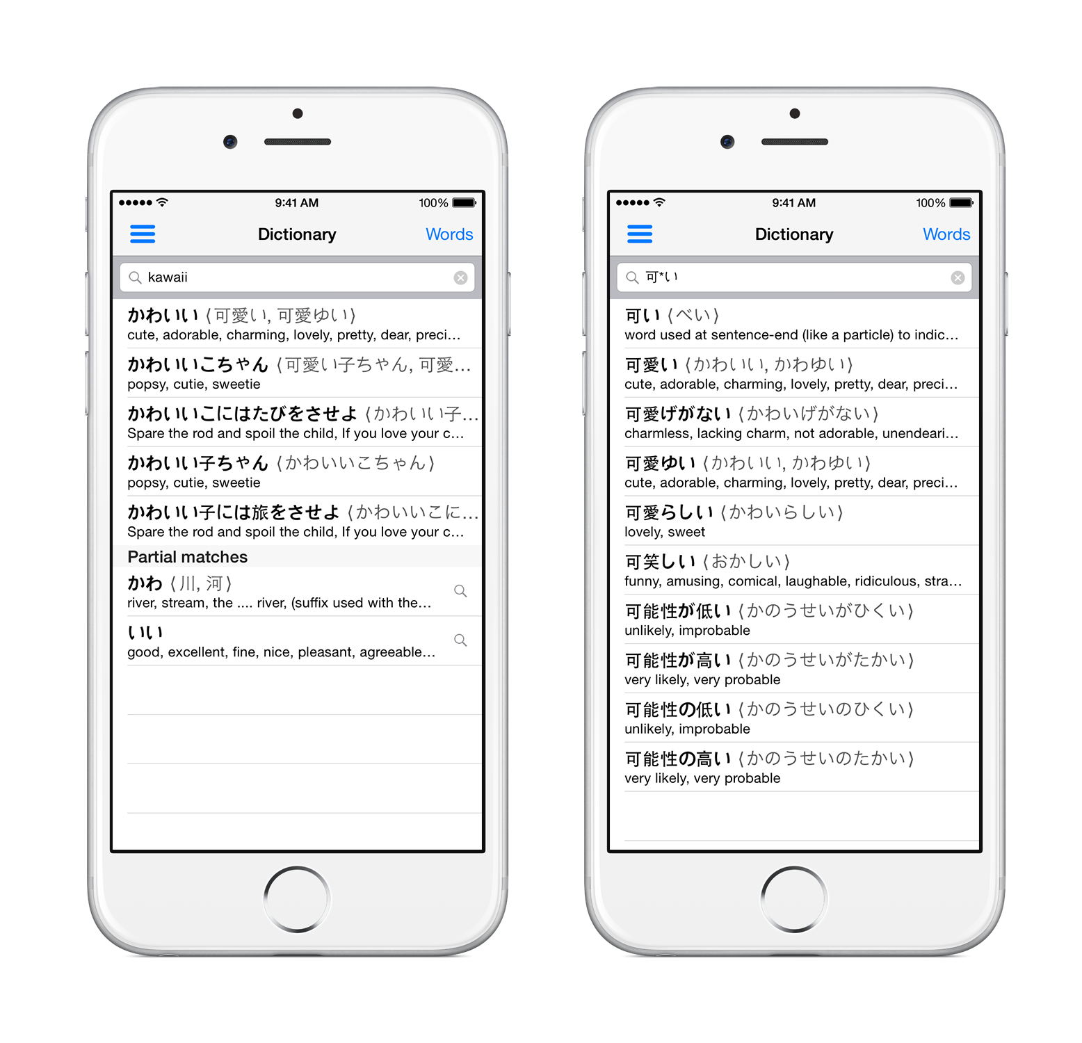 Shirabe Jisho is Japanese-English and English-Japanese dictionary app for iPhone and iPad. The app's features include: